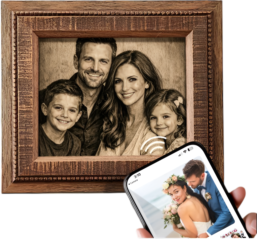 Each Momento engraving contains a hidden NFC microchip embedded within the image. This smart technology allows your engraved artwork to connect with digital memories.